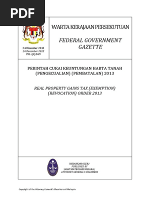 Pua 20131224 P U A 369 Perintah Cukai Keuntungan Harta Tanah Pengeculian Pembatalan 2013 Pdf