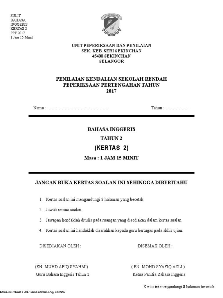 Penilaian Kendalian Sekolah Rendah Peperiksaan Pertengahan Tahun 2017