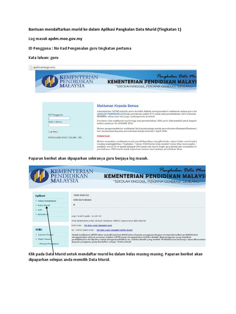 Login Apdm Kpm Panduan Aplikasi Pangkalan Data Murid 2020