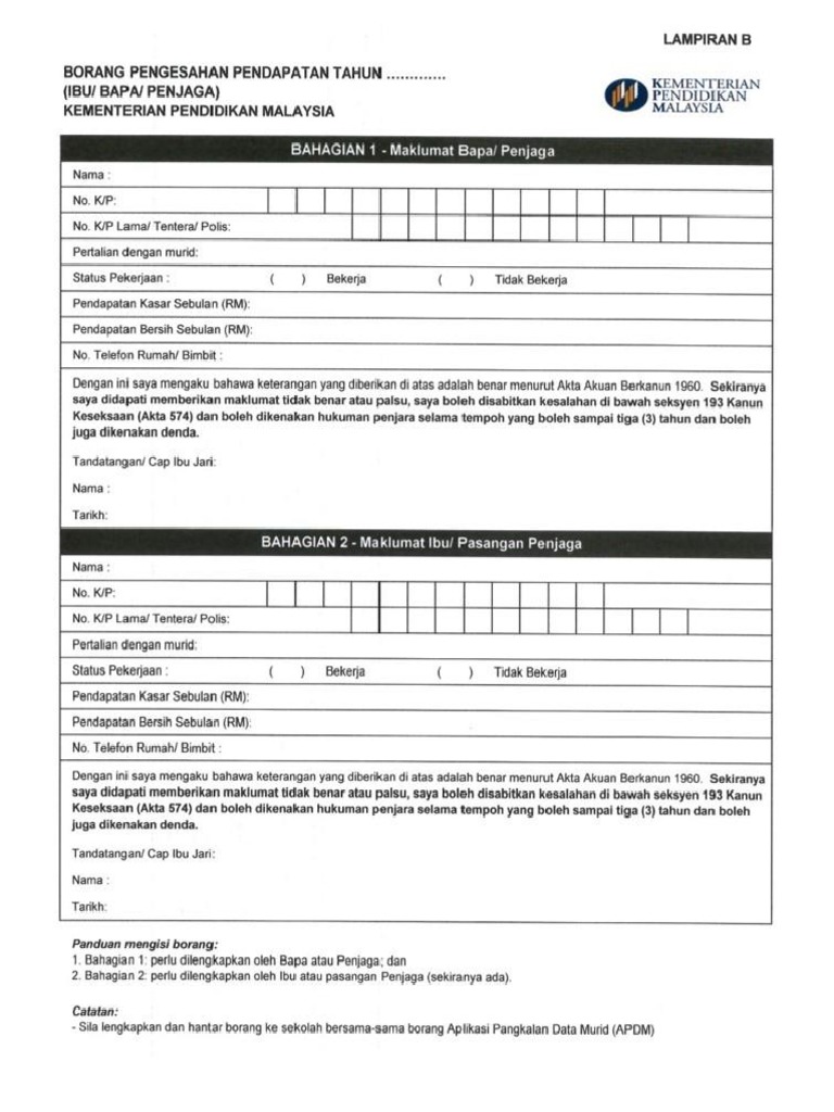 Borang Pendapatan Ibubapa