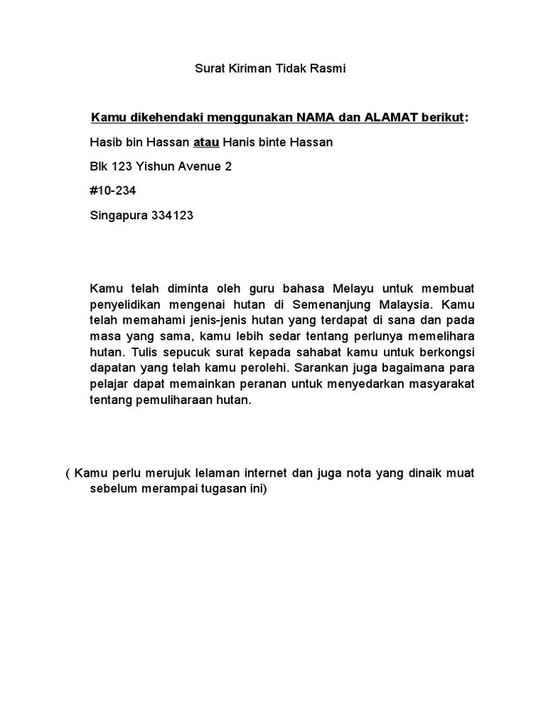 Doc Karangan Surat Kiriman Tidak Rasmi Samson As Academia Edu