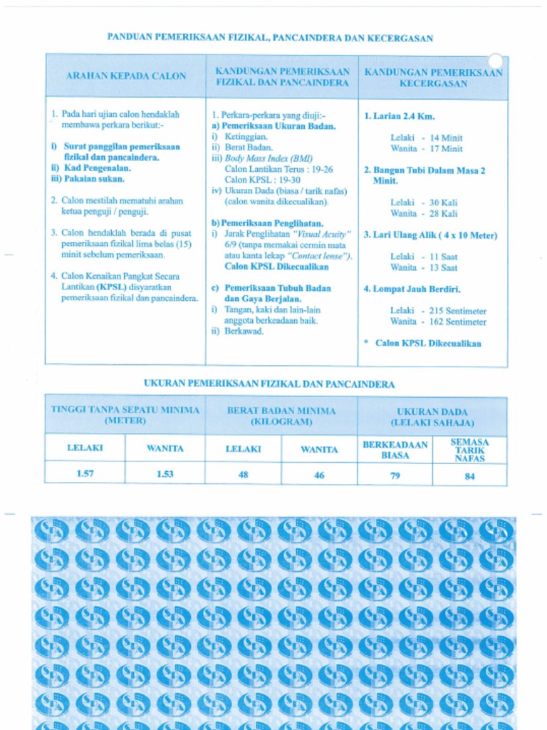 Ujian Fizikal Pancaindera Kecergasan Pegawai Penjara Gred Ka19 Spa