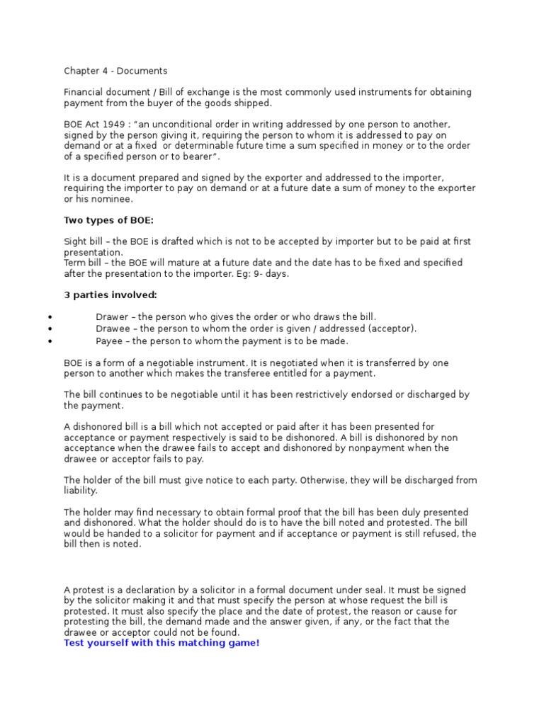 Chapter 4 Documents Bill Of Lading Negotiable Instrument