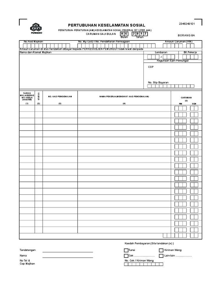 Borang 8a Perkeso 2017 Excel Format