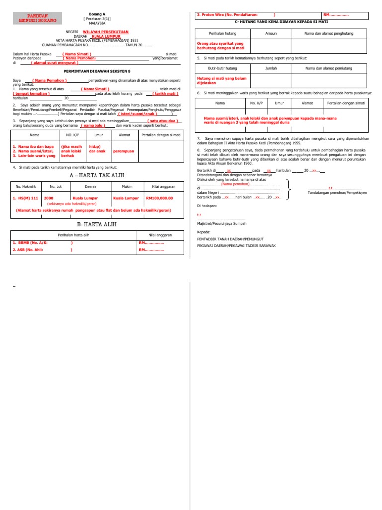 Borang A Pusaka Kecil Online