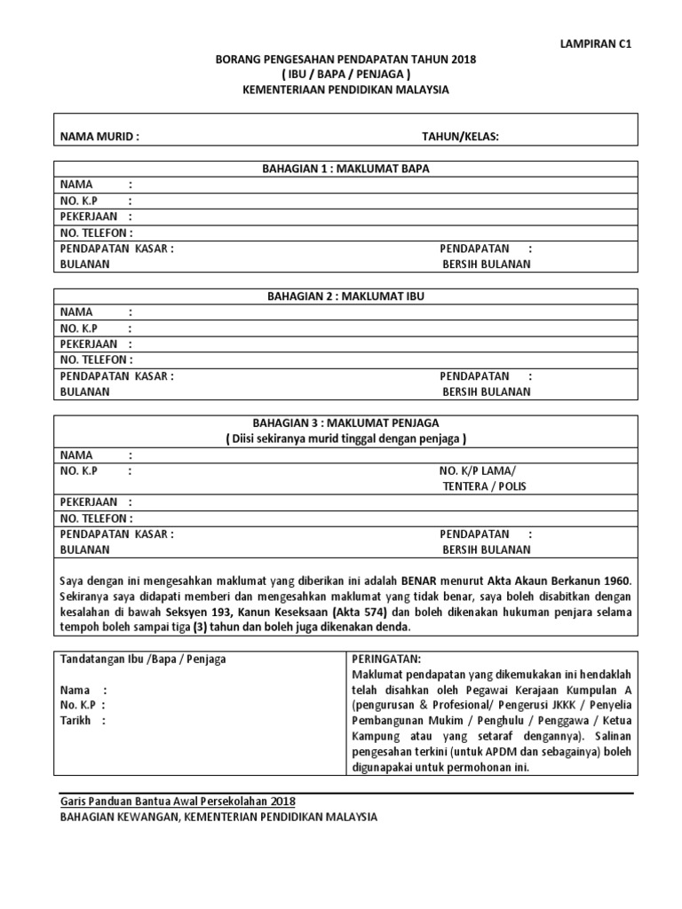 Borang Pengesahan Pendapatan Lampiran C1 Bkap1m Doc