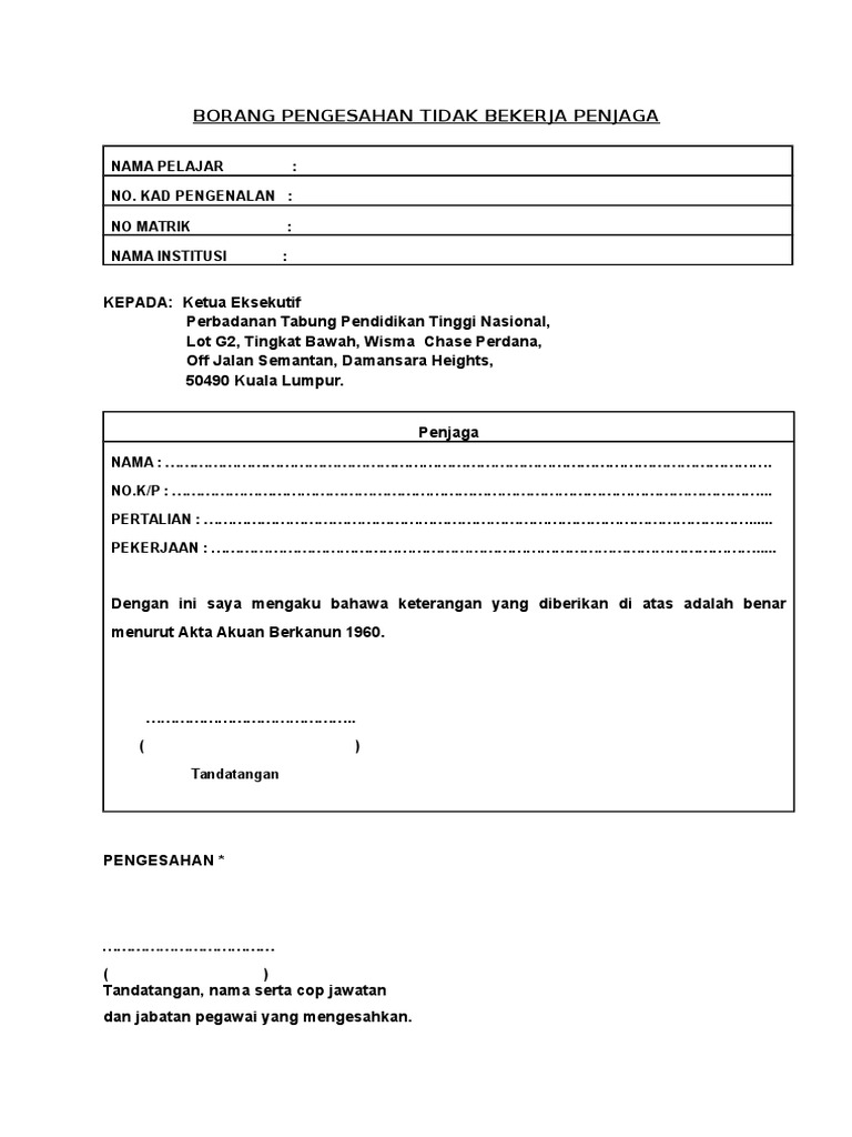 Pagrafcost Blog Archive Surat Pengesahan Tidak Bekerja Bagi Ptptn