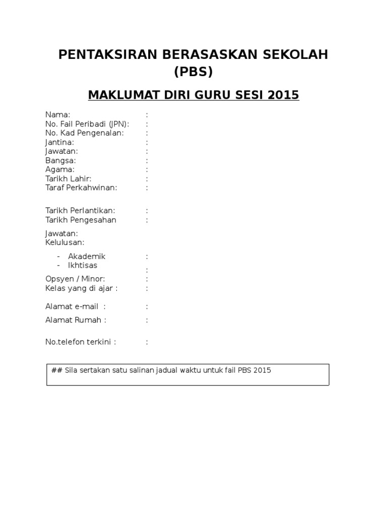 Di dalam template pelaporan pbd ini ia merupakan template gabungan semua mata pelajaran mengikut tahun. Pentaksiran berasaskan sekolah pbs 1. Pentaksiran berasaskan sekolah pbs 65 4 3 1 1 elemen pengetahuan 66 4 3 1 2 elemen kemahiran 68 4 3 1 3 elemen sikap 70 4 3 1 4 elemen peralatan dan kemudahan 71 4 3 2 masalah yang dihadapi sewaktu melaksanakan pentaksiran berasaskan sekolah pbs 73 4 3 3 perbezaan tahap kesediaan mengikut. Pengendalian ujian lisan berasaskan sekolah.