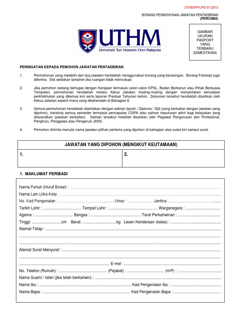 Ups 01 Borang Permohonan Jawatan Pentadbiran