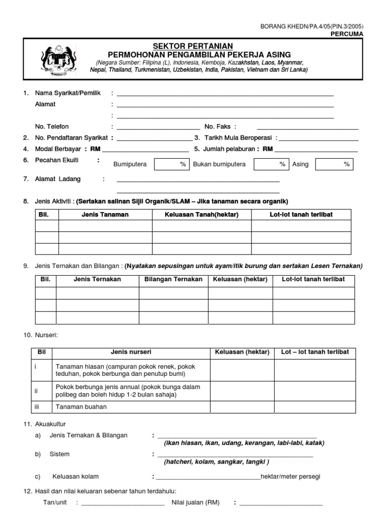Borang Sektor Perkilangan Pk O Kdn Pa 01 L1a