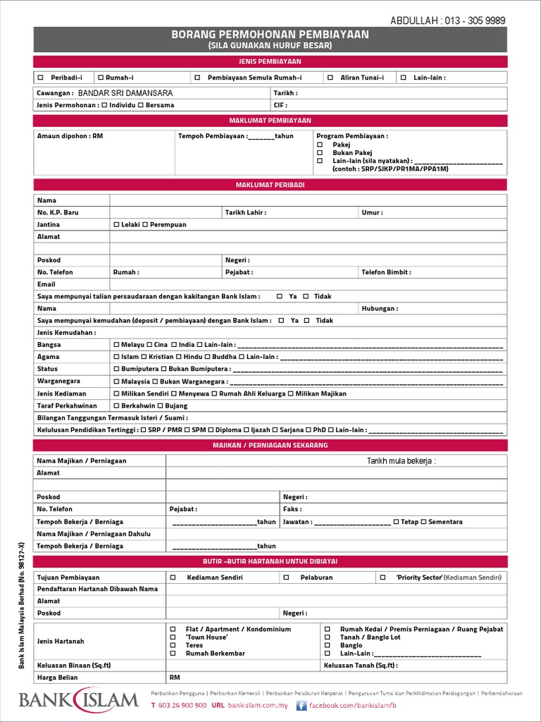 Borang Permohonan Pinjaman Perniagaan Bank Islam