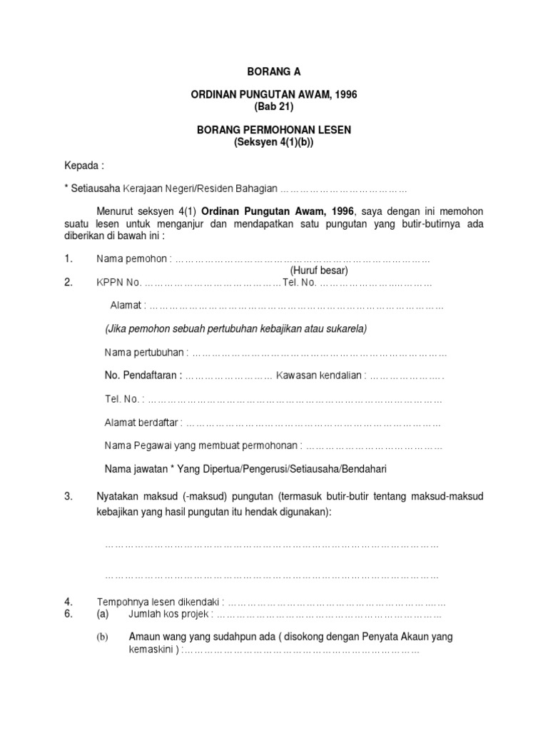Borang A Borang Permohonan Lesen