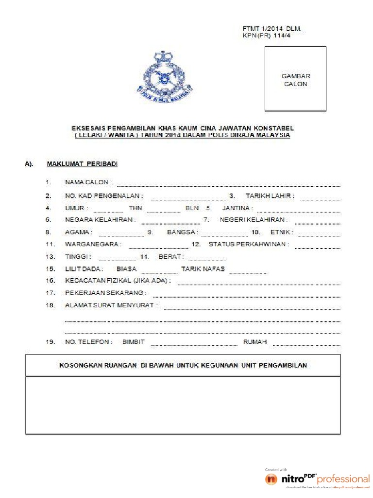 Hebahan Borang Ganti Rugi Calon Unit Pengambilan Polis Diraja Malaysia Facebook