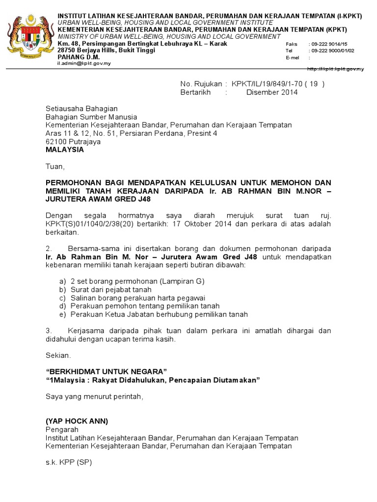 Surat Rayuan Permohonan Tanah Kerajaan Pewarna O