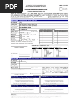 Borang Perpindahan Calon Lpm Am37 Pin 2 2004 Pdf Document
