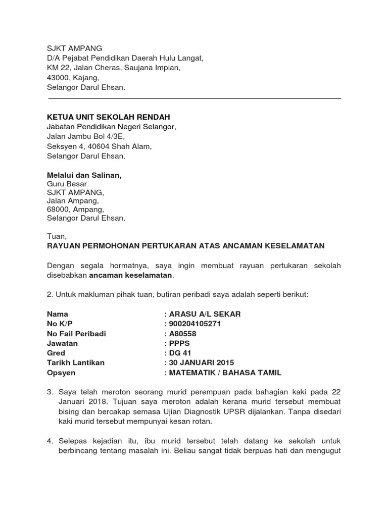 92956439 Contoh Surat Rayuan Pertukaran