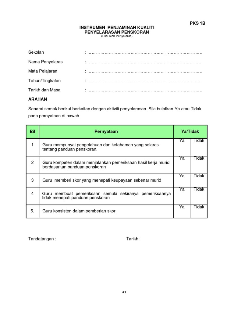 Borang Penyelarasan Pks1b Pdf