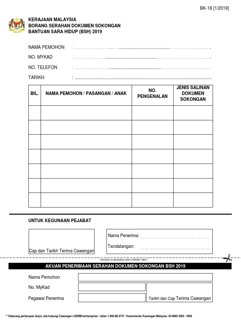 Bk 18 Borangserahandokumensokonganbsh2019 Pdf