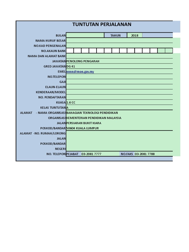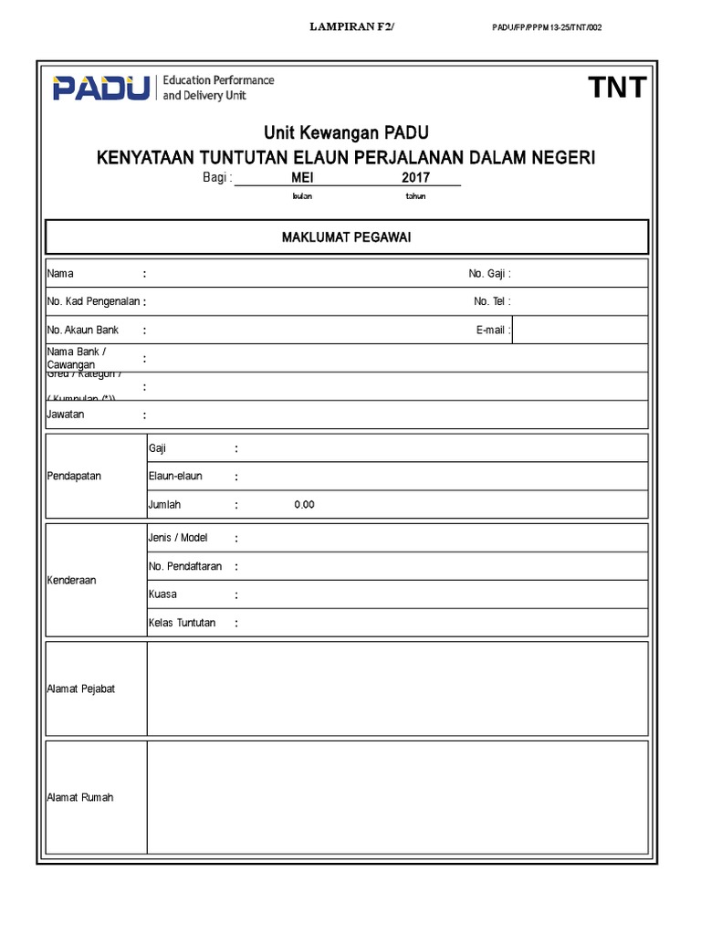 Borang Tuntutan Elaun Perjalanan Dalam Negeri Padu Xlsx