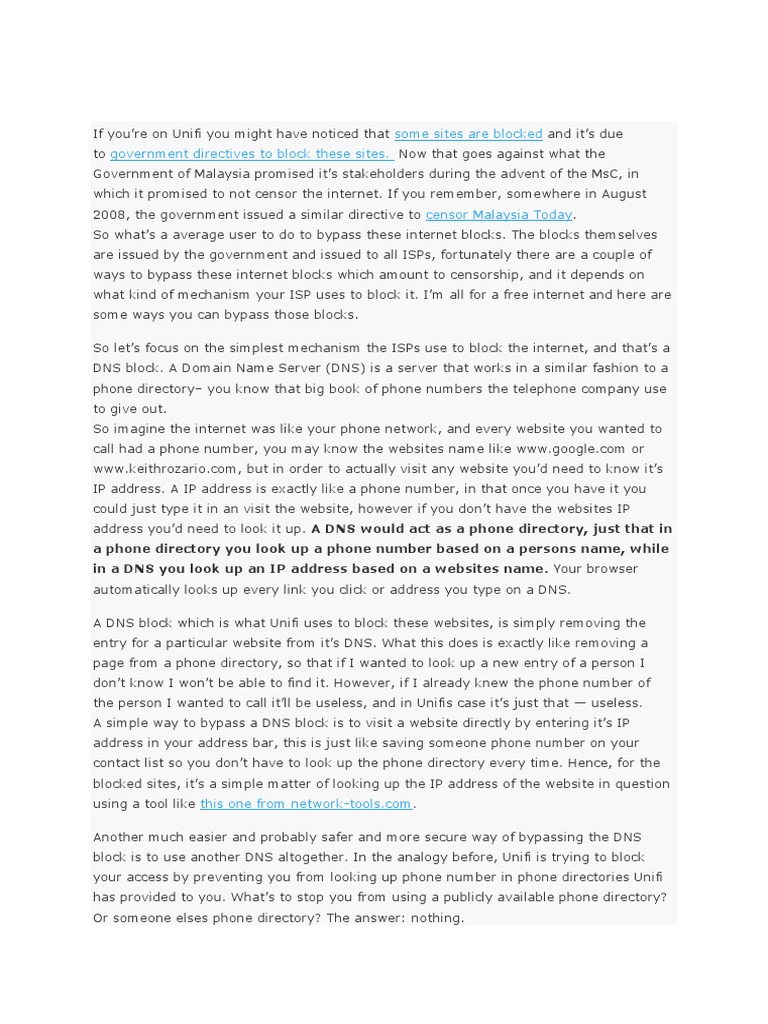 Bypass Unifi Blocking And Censoring Of Websites