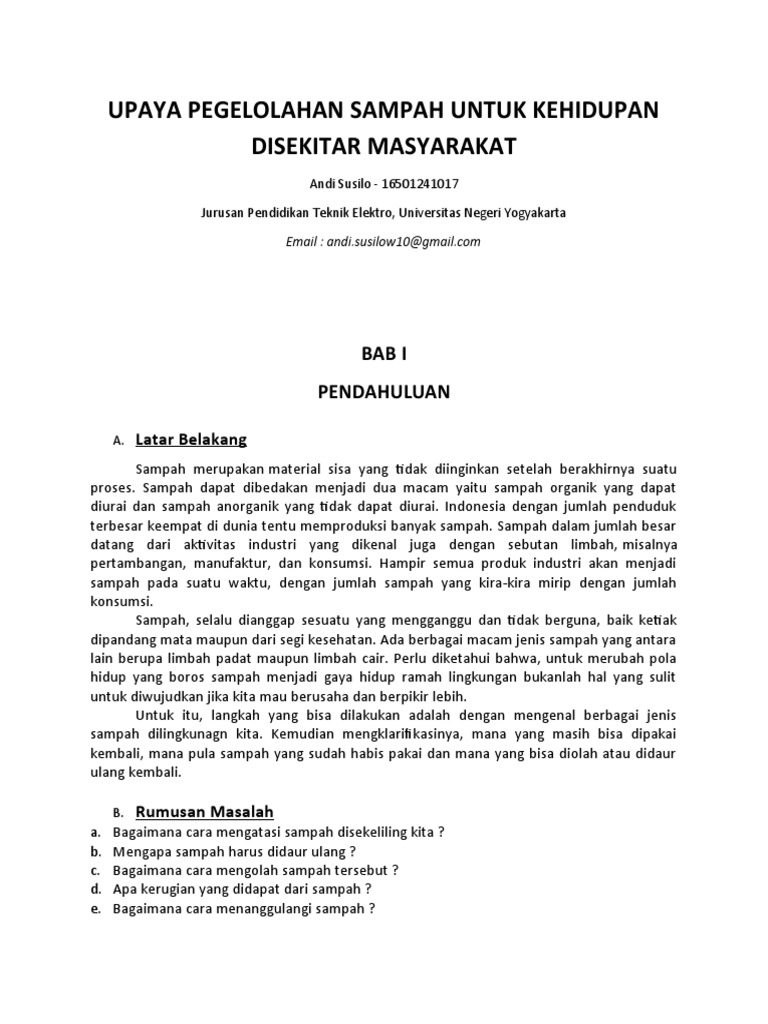 Upaya Pegelolahan Sampah Untuk Kehidupan Disekitar Masyarakat