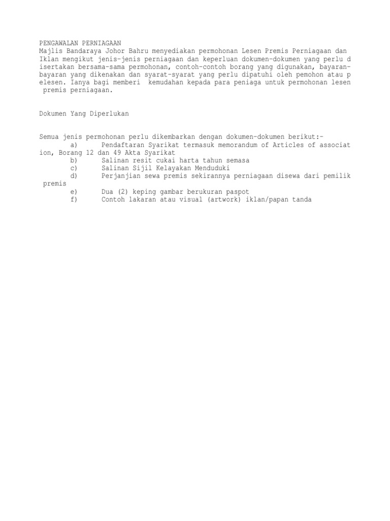 Pembaharuan Lesen Perniagaan Perusahaan Dan Iklan Pelesenan Di Bawah Undang Undang Kecil Tred Perniagaan Dan Perindustrian Mbjb Tahun 2016 Portal Rasmi Majlis Bandaraya Johor Bahru Mbjb