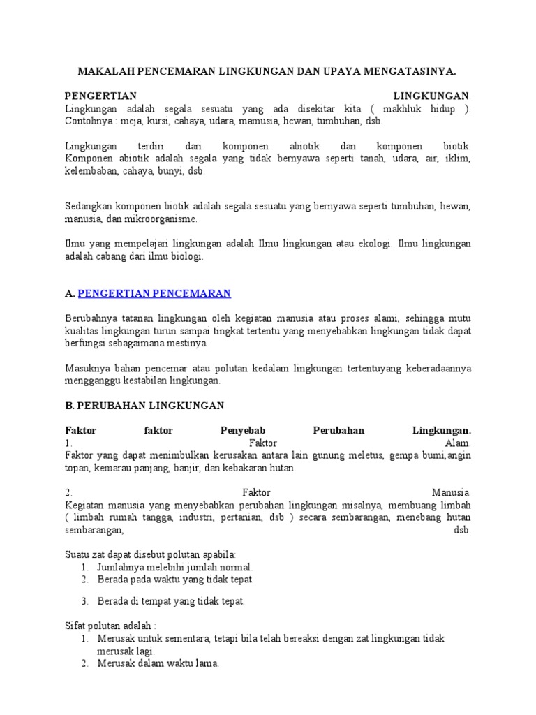 Makalah Pencemaran Lingkungan Dan Upaya Mengatasinya