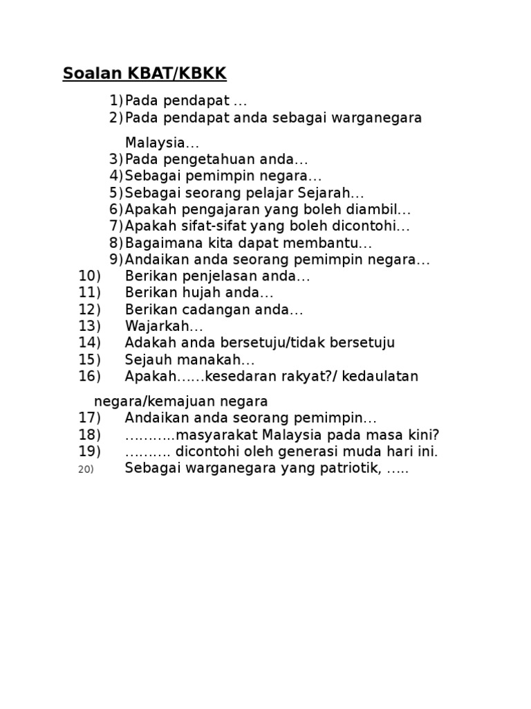 Contoh Jawapan Soalan Kbat Sejarah Kertas 3 I Soalan