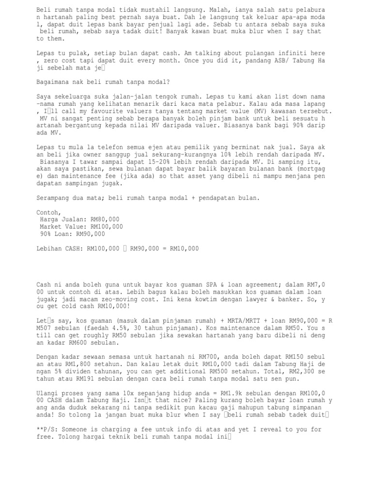 Beli Rumah Baru Dengan Modal Ciput Dan Dapat Duit Lebih Tanpa Perlu Mark Up Loan