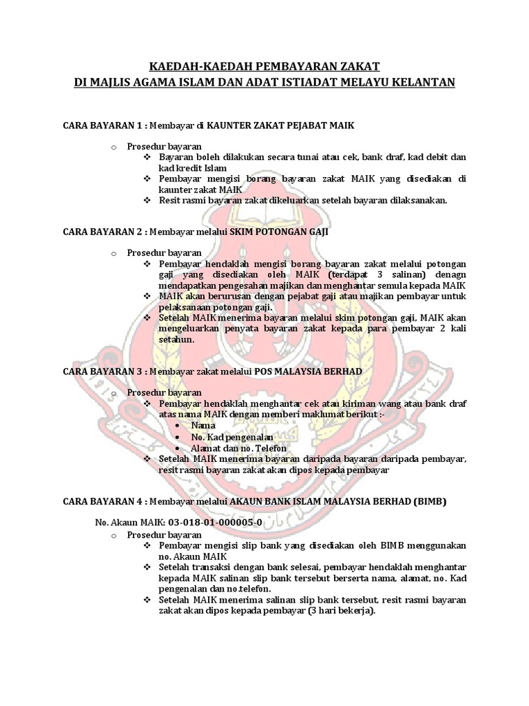 Kaedah Bayaran Zakat Di Maik 1 Pdf