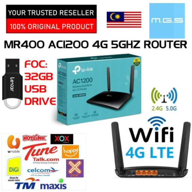 Foc 32gb Usb Tplink Mr400 Ac1200 4g Lte Dual Band 5ghz Wifi Modem Router Digi Umobile Maxis Celcom Redone Tplink Shopee Malaysia