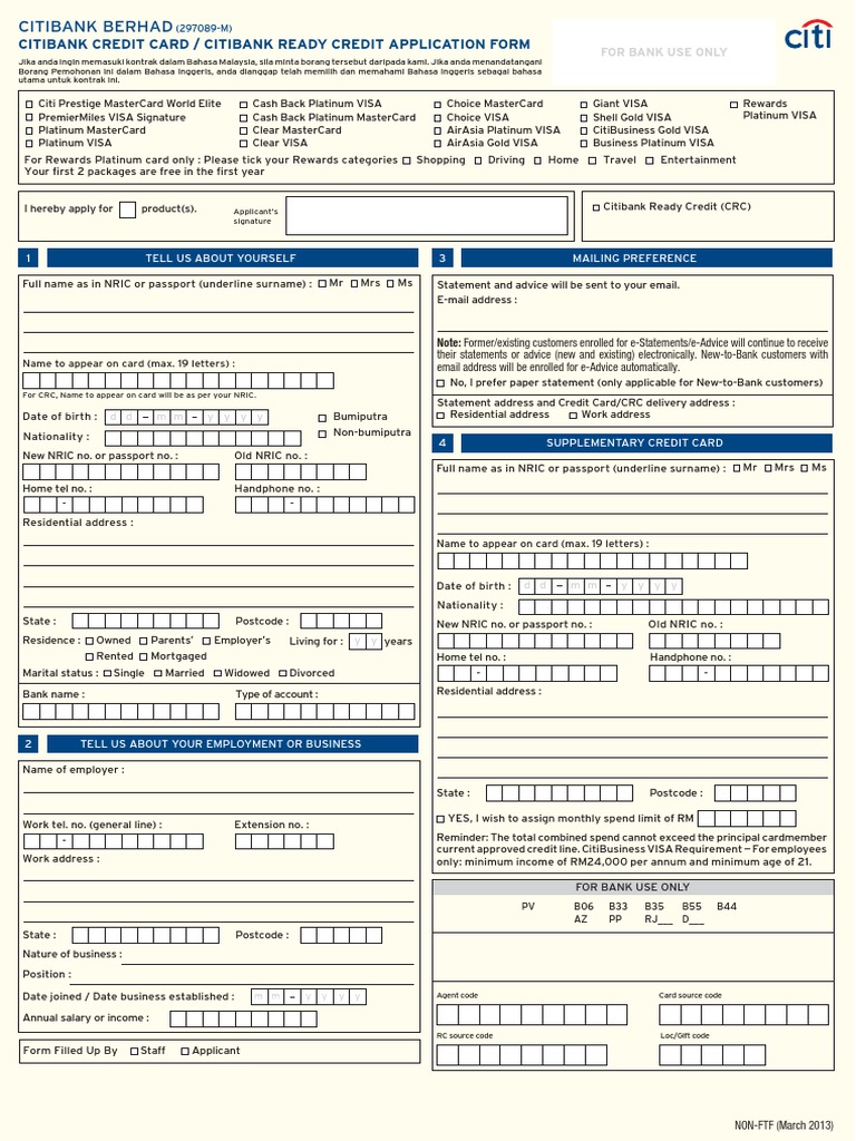 Application Form City Bank Pdf Citibank Credit Card