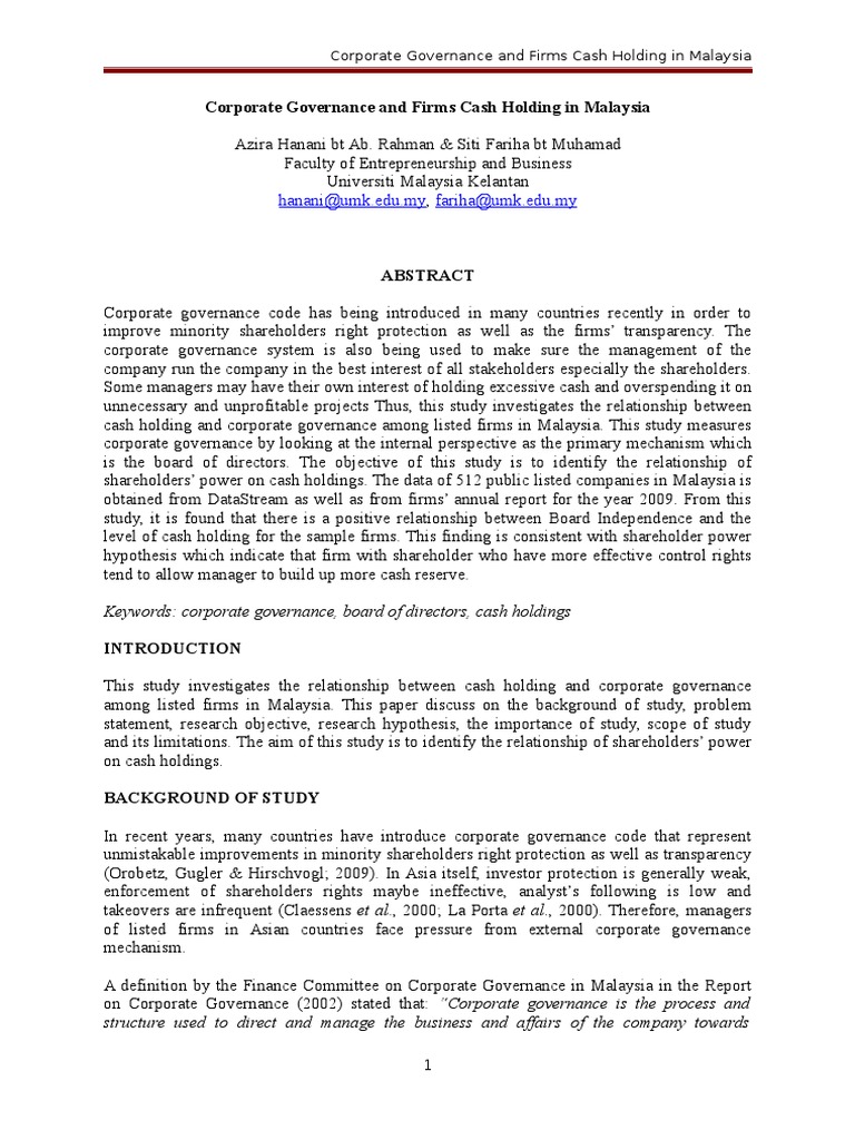 Corporate Governance And Firms Cash Holding In Malaysia 282 29 Corporate Governance Governance
