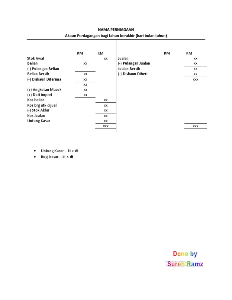 Akaun Pd D Ur T Xls Contoh Format Akaun Penamat Dalam Bentuk T Akaun Perdagangan Dan Untung Rugi Bagi Tahun Berakhir 31 Disember 20x7 Rm Rm Rm Rm Course Hero