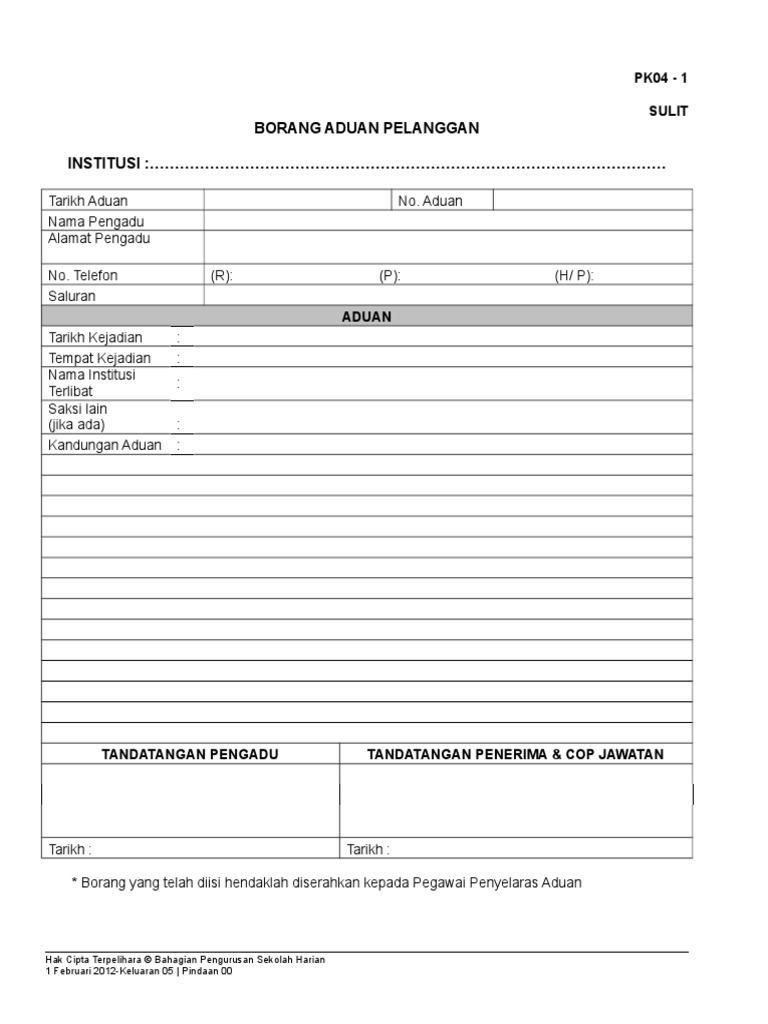 Pk 04 1 Borang Aduan Pelanggan