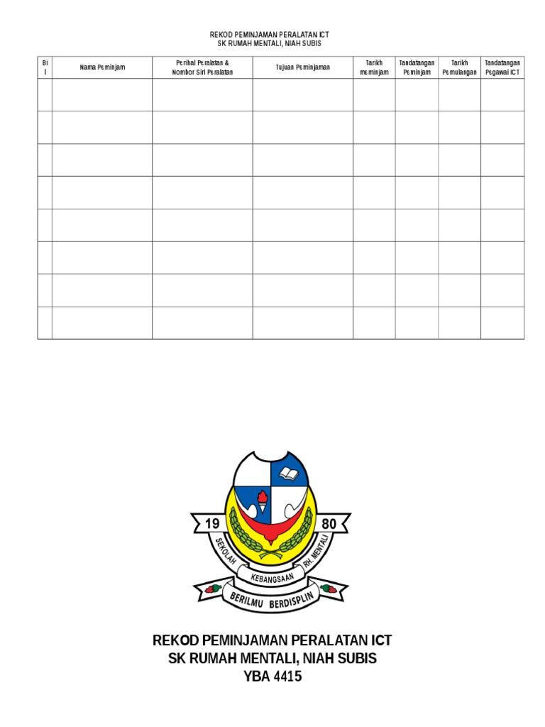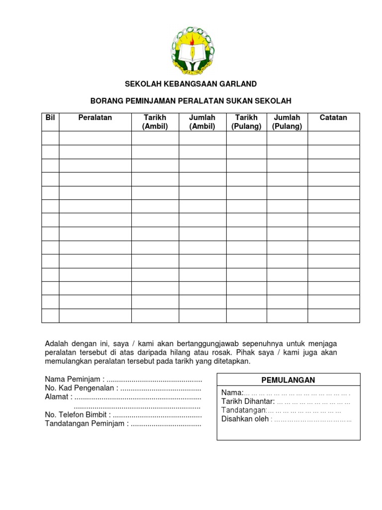 Contoh Borang Pinjaman Barang