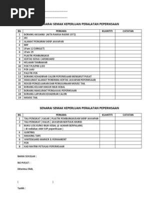 Senarai Semak Keperluan Peralatan Peperiksaan
