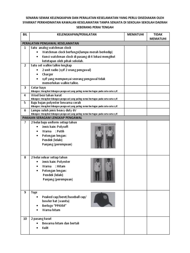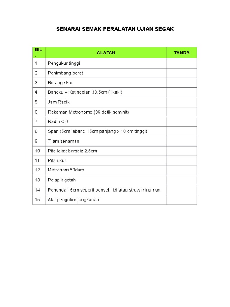 Senarai Semak Peralatan Dan Kelengkapan Pkk