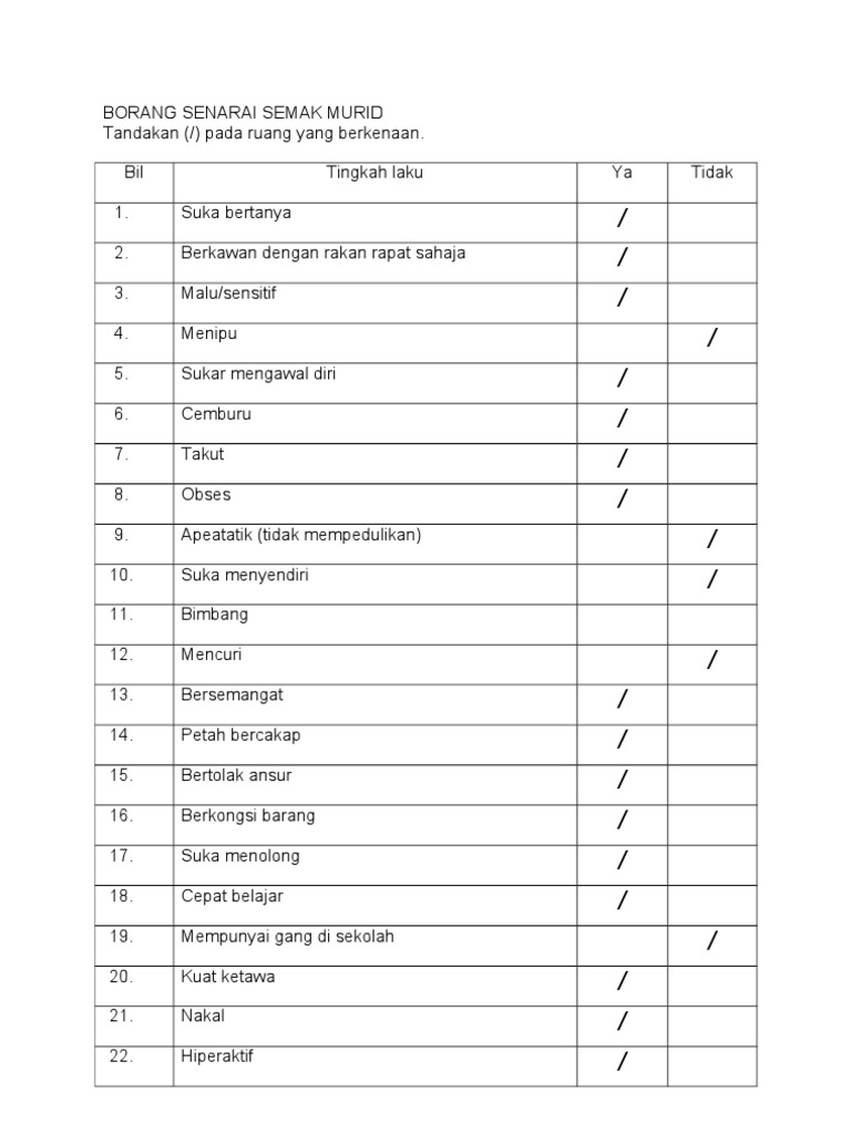 Borang Senarai Semak Kemudahan Dan Prasarana Prasekolah