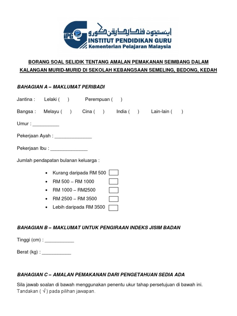 Contoh Borang Soal Selidik Obesiti Contoh Soal Dan Materi Pelajaran 3