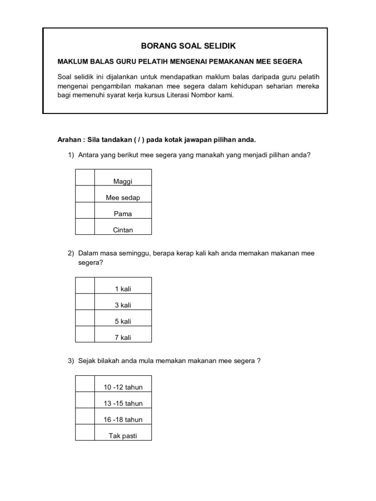 Contoh Borang Soal Selidik Tentang Makanan Tradisional Clone 408