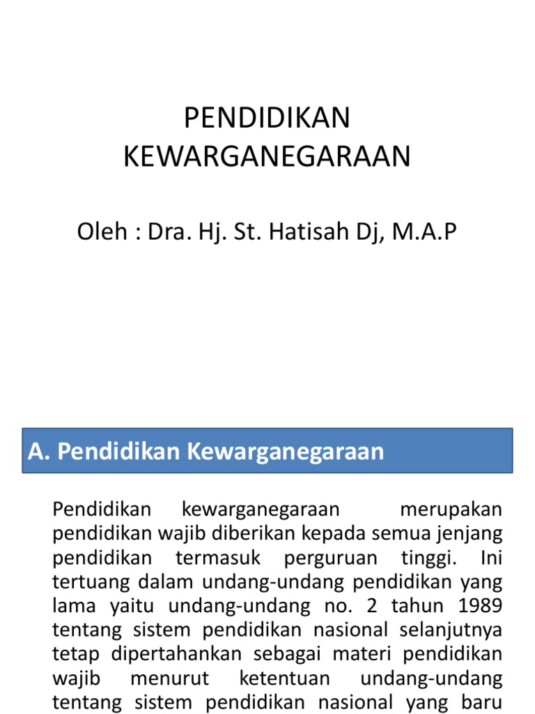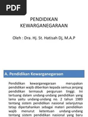 Pendidikan Kewarganegaraan Oleh Dra Hj St Hatisah Dj M A P