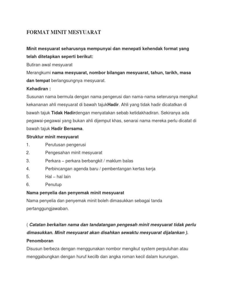 Doc Contoh Format Minit Mesyuarat Wawa Wawa Academia Edu