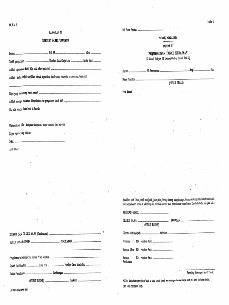 Tukang Sukat Tanah Borang Permohonan Tanah Kerajaan Lsf1001