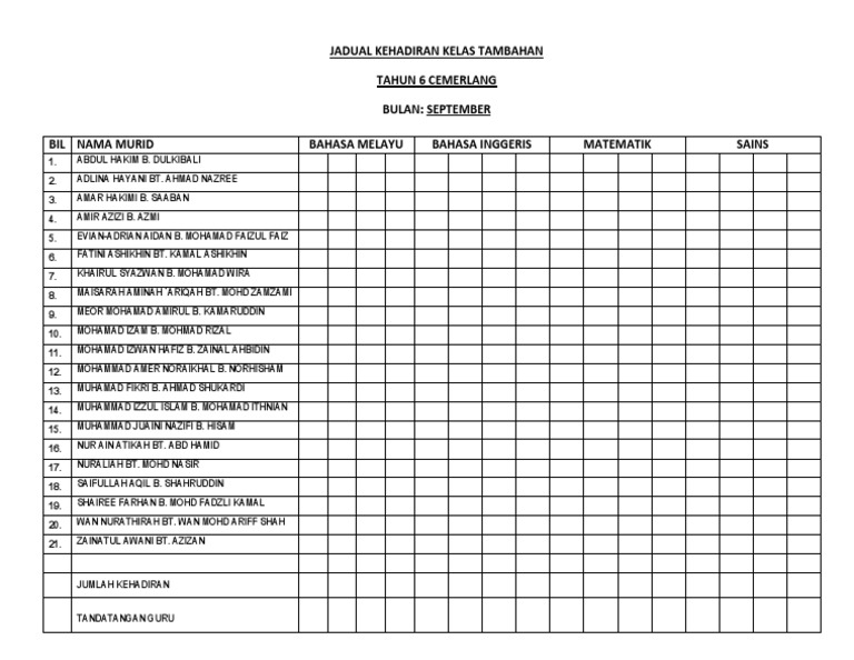 Template Excel Buku Rekod Kedatangan Murid Pendidik2u