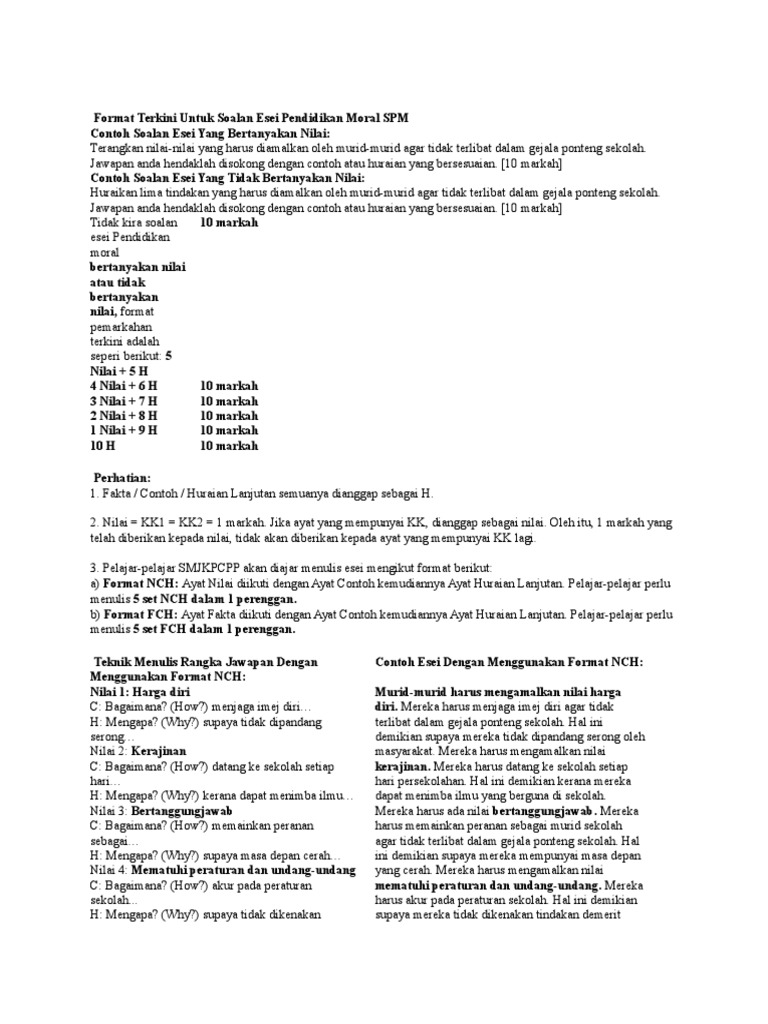 Format Terkini Untuk Soalan Esei Pendidikan Moral Spm Docx